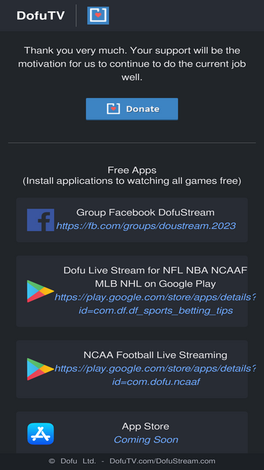 App FreeInstall applications to watching all games free Dofu Live Stream for NFL NBA NCAAF MLB NHL. Your government and ISP internet service provider may. Descripción de Dofu Live Stream for XFL NFL NBA NCAAF MLB NHL.